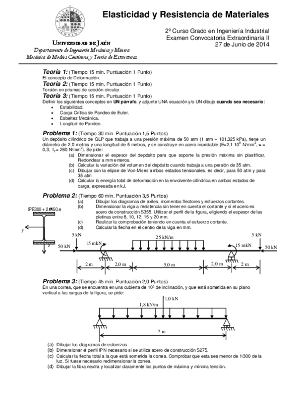 He publicado nuevos examenes de 2º Elasticidad y Resistencia de Materiales: Exámenes