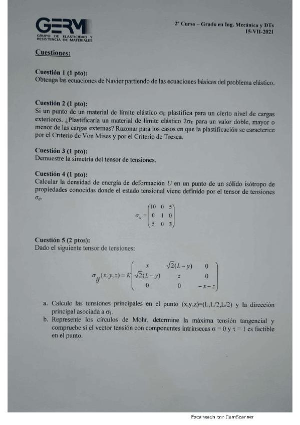 He publicado nuevos examenes de 2º Elasticidad y Resistencia de Materiales: EXAMEN-2o-PARCIAL-2024.pdf