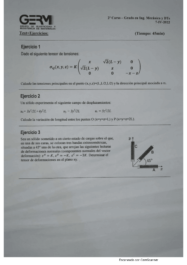 He publicado nuevos examenes de 2º Elasticidad y Resistencia de Materiales: Ejemplo-examen-1o-Parcial.pdf