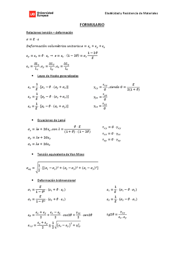 He publicado nuevos apuntes de 3º Elasticidad y Resistencia de Materiales: Formulario.pdf