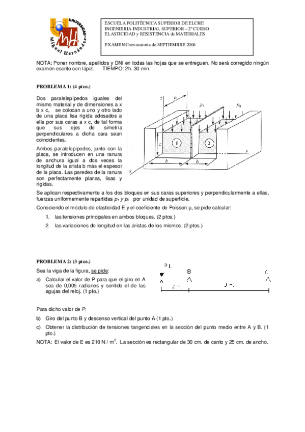 He publicado nuevos ejercicios de 3º ELASTICIDAD Y TEORÍA DE ESTRUCTURAS: Ejercicios-elasticidad-2.pdf