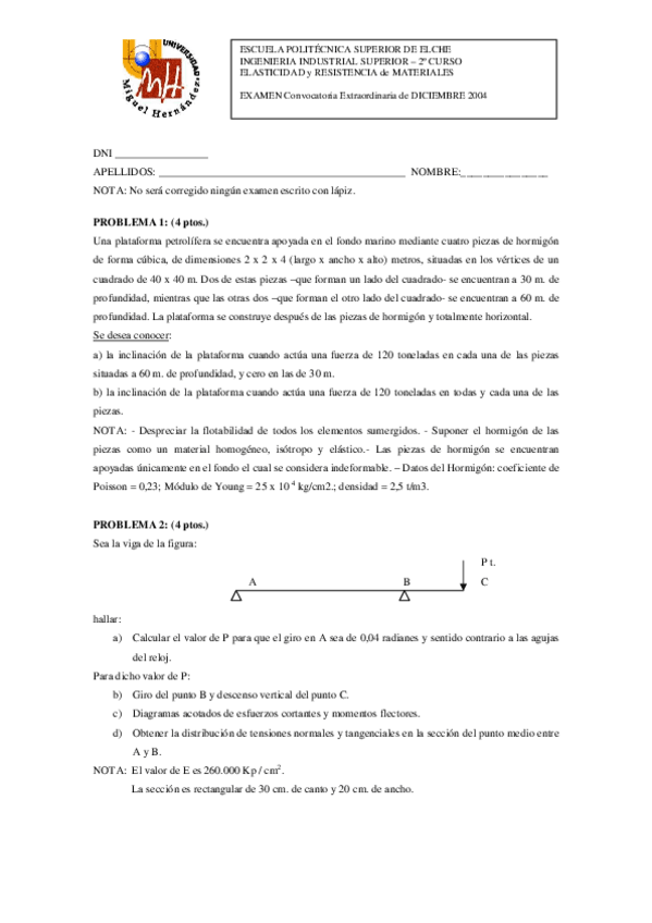 He publicado nuevos ejercicios de 3º ELASTICIDAD Y TEORÍA DE ESTRUCTURAS: Ejercicios-elasticidad-4.pdf