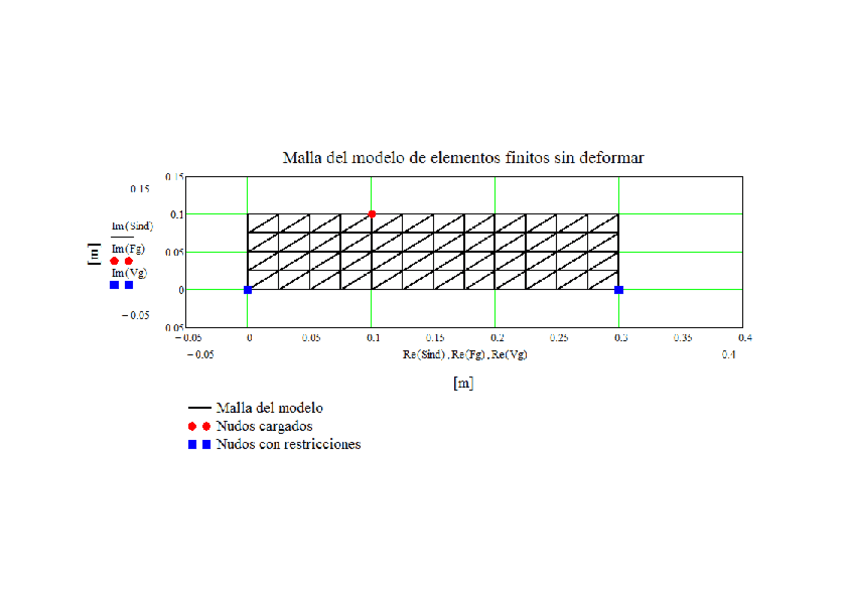 Matlab solver de práctica 2 elementos finitos de manera matricial. Problema de triángulo con carga de superficie en la base apuntando hacia abajo (-P) y en la esquina derecha carga R con angulo theta.