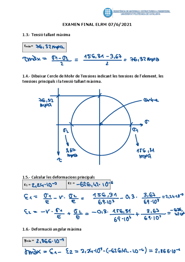 He publicado nuevos examenes de 2º Elasticitat i Resistència dels Materials: Examen-rema-1-6-2021-resuelto.pdf