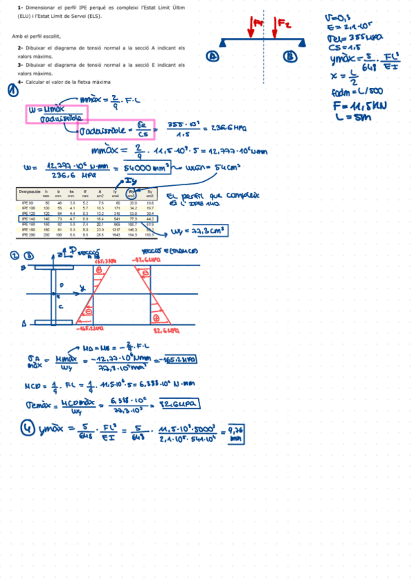 En este doc encontrarás un paso a paso de como resolver un ejercicio de Flexión simple (sin cargas distribuidas), con todo lo que te pueden pedir