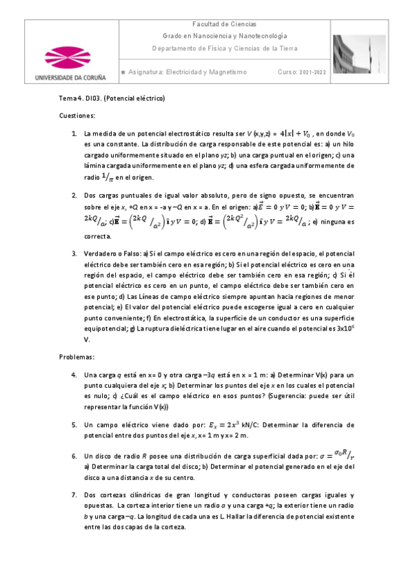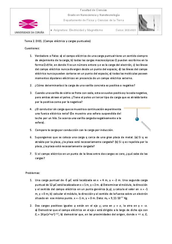 He publicado nuevos ejercicios de 1º Electricidad y Magnetismo: Boletineselectricidadymagnetismo2022.pdf