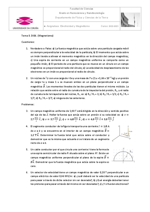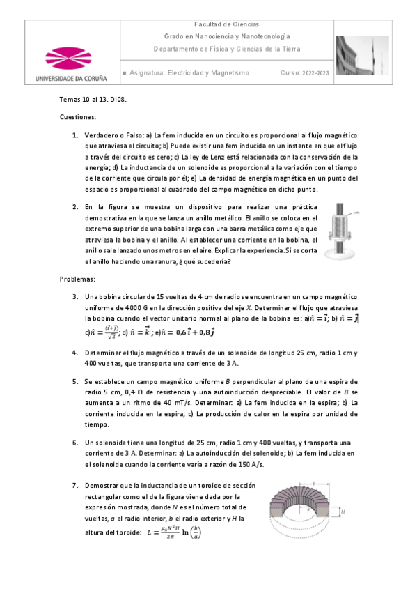 He publicado nuevos ejercicios de 1º Electricidad y Magnetismo: Boletin-Tema-8.pdf