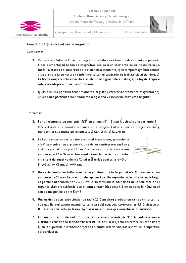 He publicado nuevos ejercicios de 1º Electricidad y Magnetismo: Boletin-Tema-9.pdf