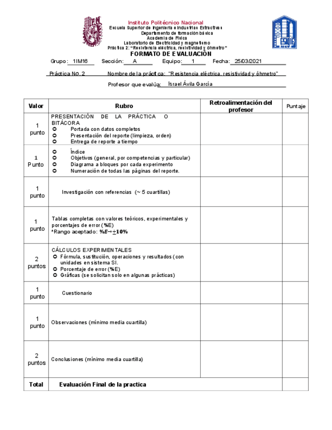 He publicado nuevos practicas de 1º Electricidad y Magnetismo: Practica-No.2-Resistencia-electrica-resistividad-y-ohmetro-EIRL.pdf