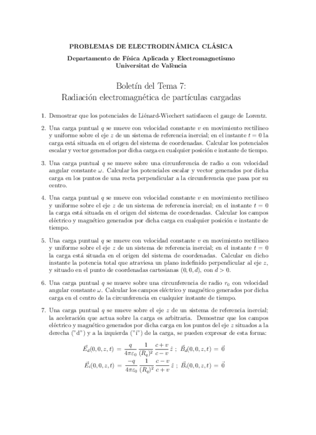 He publicado nuevos ejercicios de 4º Electrodinámica Clásica: TuteladesElectrodinamicaII.pdf