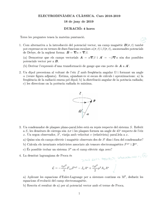He publicado nuevos examenes de 4º Electrodinámica Clásica: Exàmens
