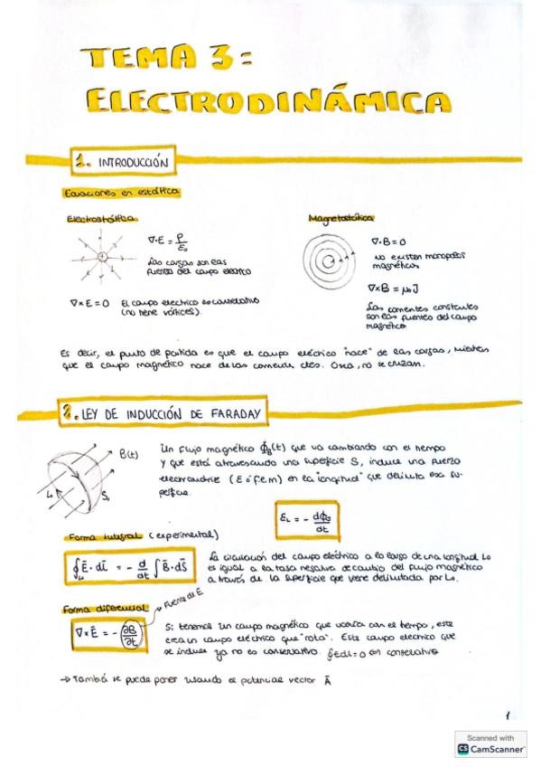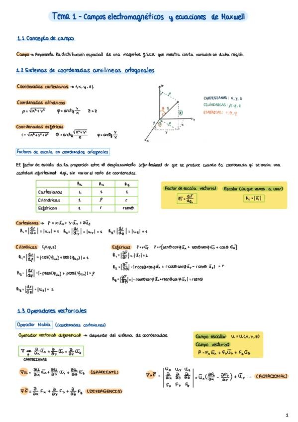 Apuntes Tema 1 Campos electromagnéticos y ecuaciones de Maxwell