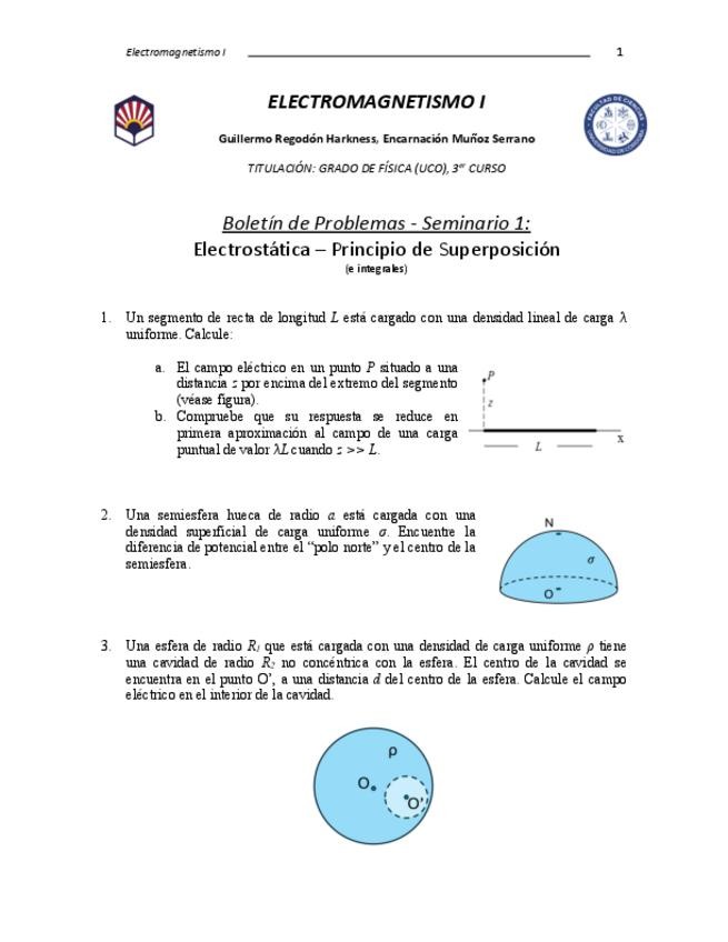 He publicado nuevos ejercicios de 2º Electromagnetismo I: Ejercicios-Tema-1.pdf
