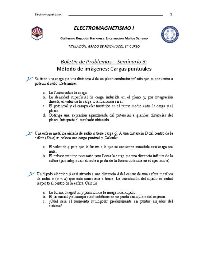 He publicado nuevos ejercicios de 3º Electromagnetismo I: Boletin-Electro-I.pdf