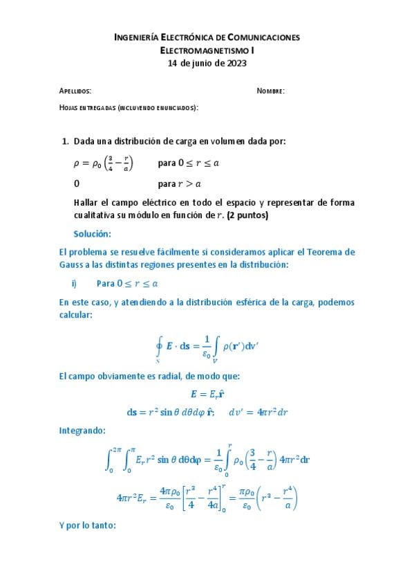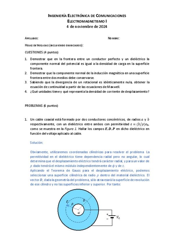 Exámenes Electromagnetismo I resueltos
