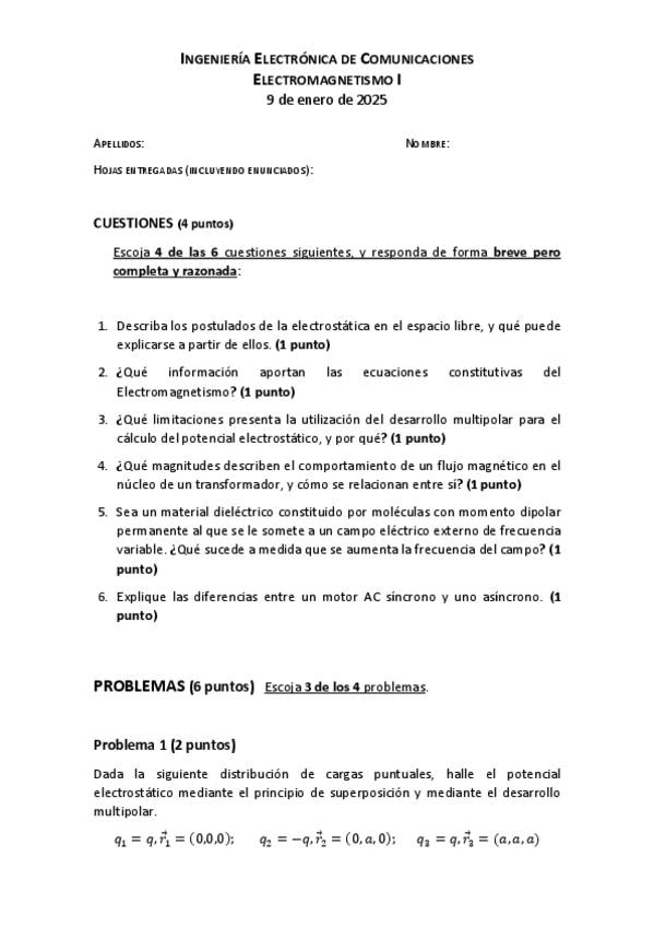 He publicado nuevos examenes de 2º Electromagnetismo I: Tema-1Problemas.pdf