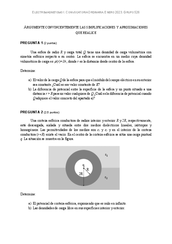 He publicado nuevos examenes de 2º Electromagnetismo I: Examen-final-enero-2023-electro-1.pdf