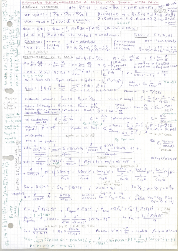 He publicado nuevos apuntes de 2º Electromagnetismo I: FormularioElectro1.pdf