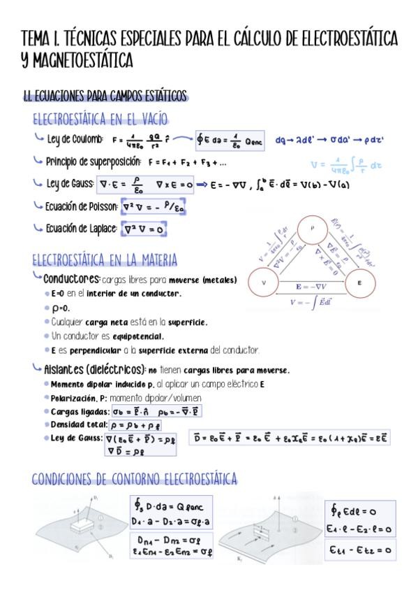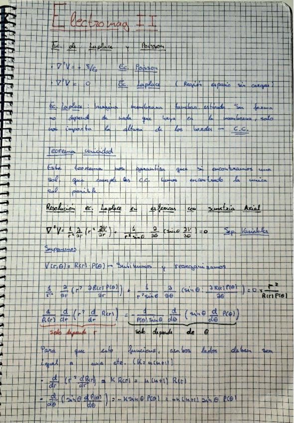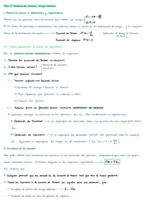 Apuntes del tema 2 resumidos con teorema de reciprocidad, método de las imágenes y separación de variables