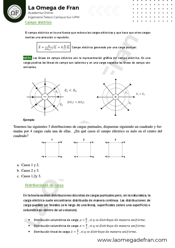 Resolución Ejercicio Cargas Puntuales Academia 100% Online Ingenierías UPM Campus Sur www.moodlelaomegadefran.com