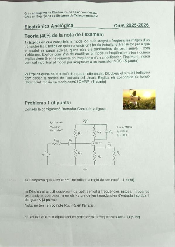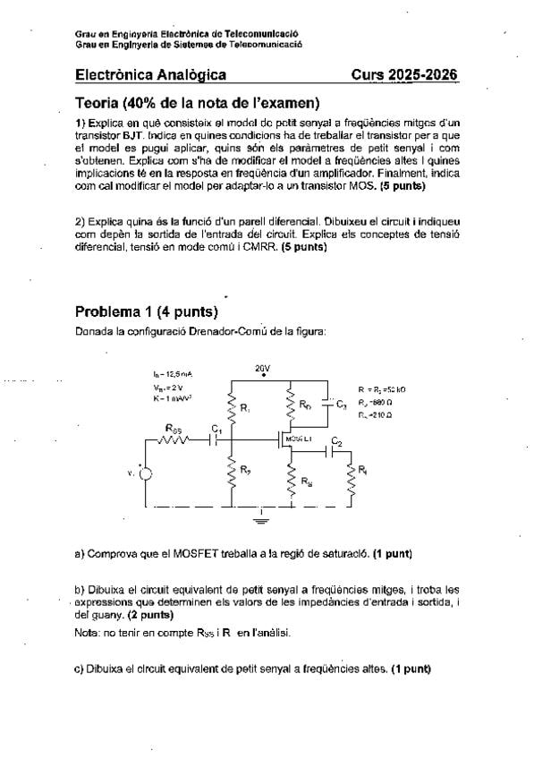 He publicado nuevos examenes de 2º Electrónica Analógica: Parcial-1-Electronica-Analogica-Curs-2025-2026.pdf