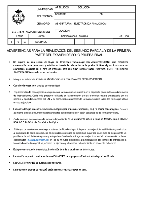 He publicado nuevos examenes de 2º Electrónica Analógica I: EA1Parcial12020sol.pdf