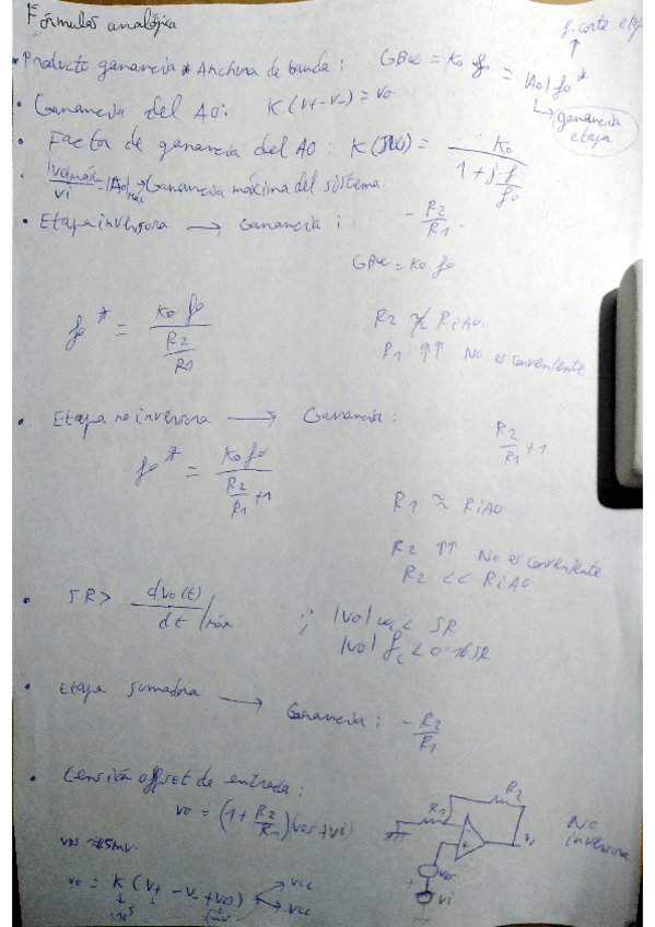He publicado nuevos apuntes de 2º Electrónica Analógica: Formulas-analogica.pdf