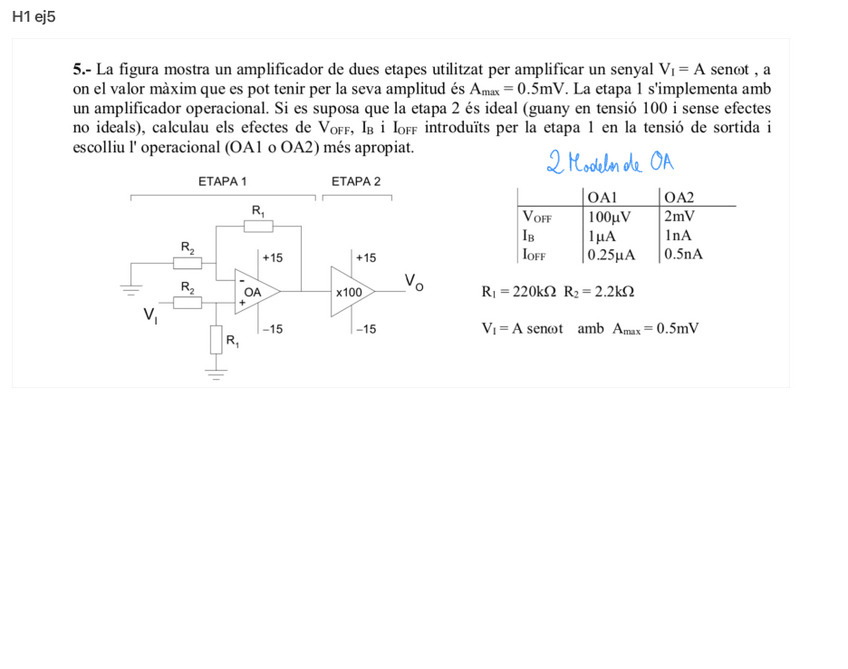 He publicado nuevos ejercicios de 2º Electrónica Analógica: problemesAmplificadors.pdf