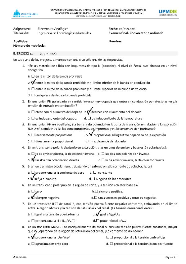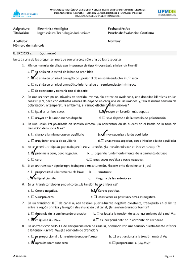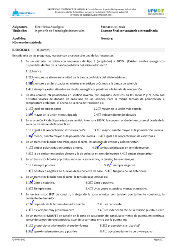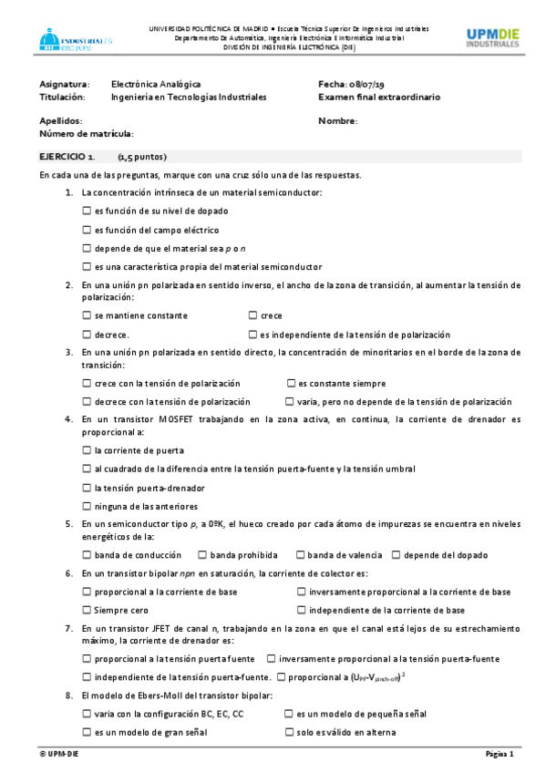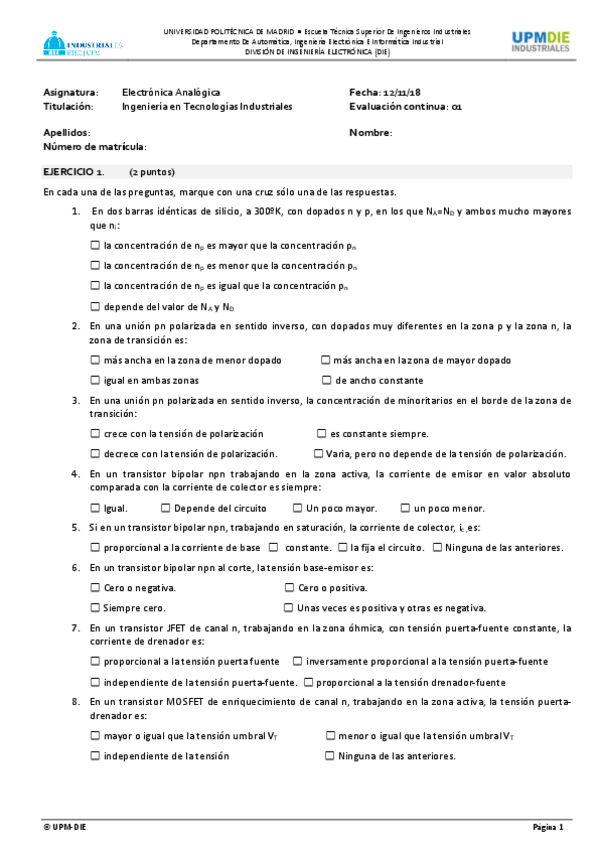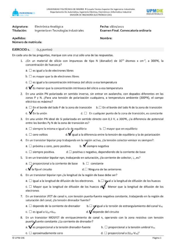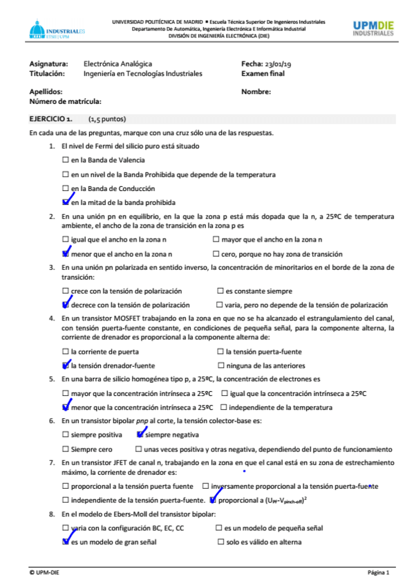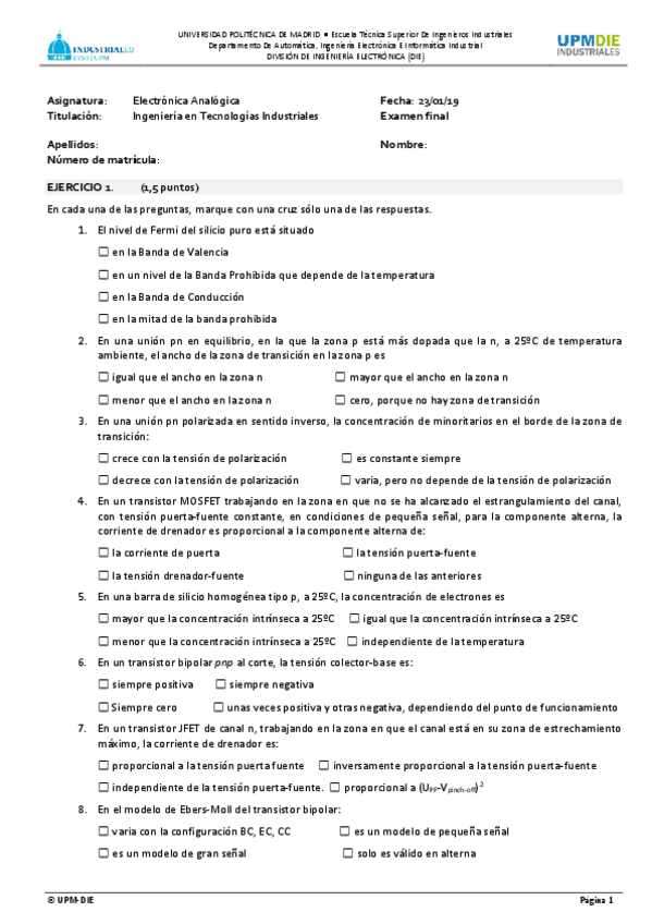 He publicado nuevos examenes de 4º Electrónica Analógica: Test-Enero-2019-solucion.pdf