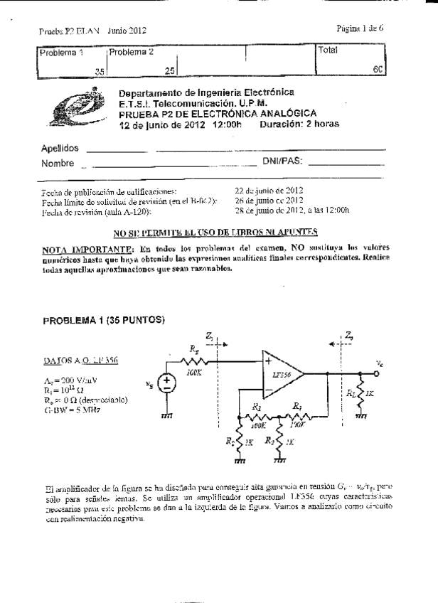 He publicado nuevos examenes de 2º Electrónica Analógica: TEMA 2 ELAN