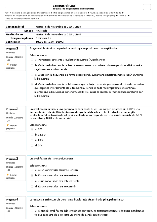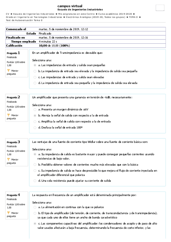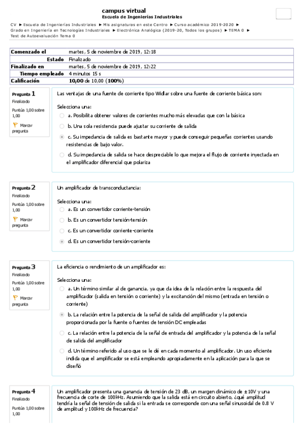 He publicado nuevos test de 3º Electrónica Analógica: Test ev. continua