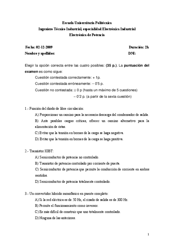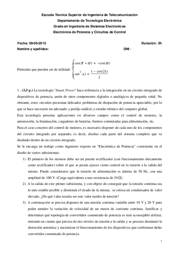 He publicado nuevos examenes de 3º Electrónica de Potencia y Circuitos de Control: Examenes Anteriores (Algunos resuletos)