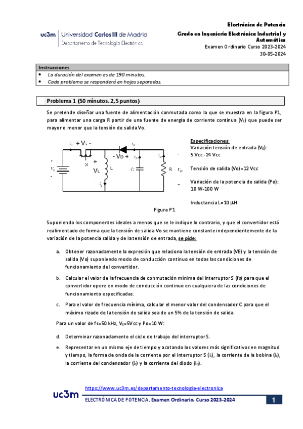 He publicado nuevos examenes de 3º Electrónica de Potencia: Ordinario 23/24-Enunciado-y-Resolucion.pdf