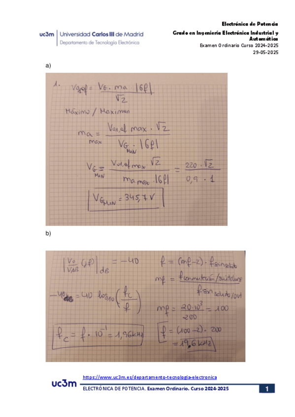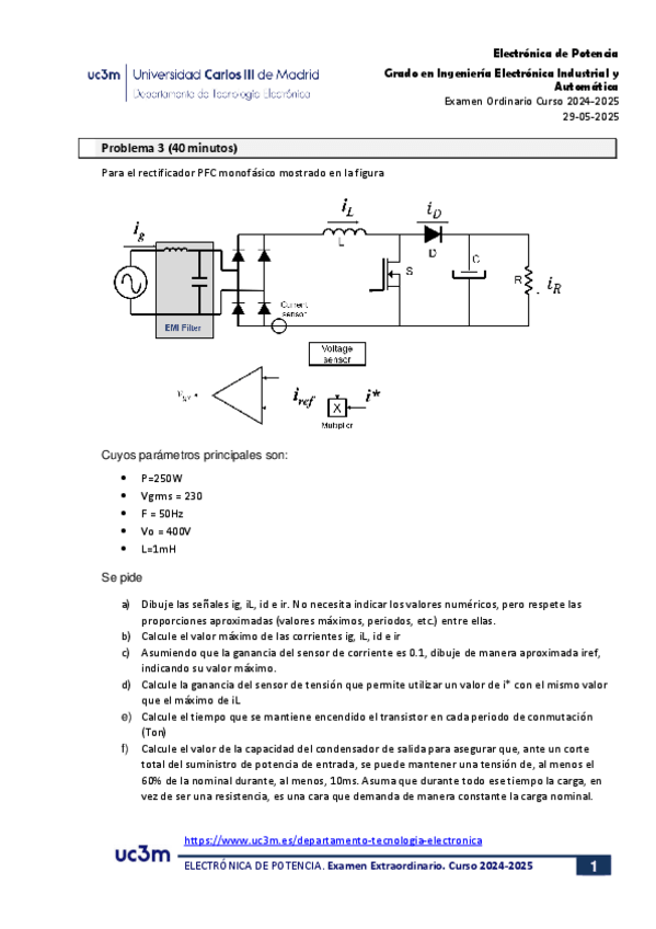 He publicado nuevos examenes de 3º Electrónica de Potencia: FINAL MAYO 2025