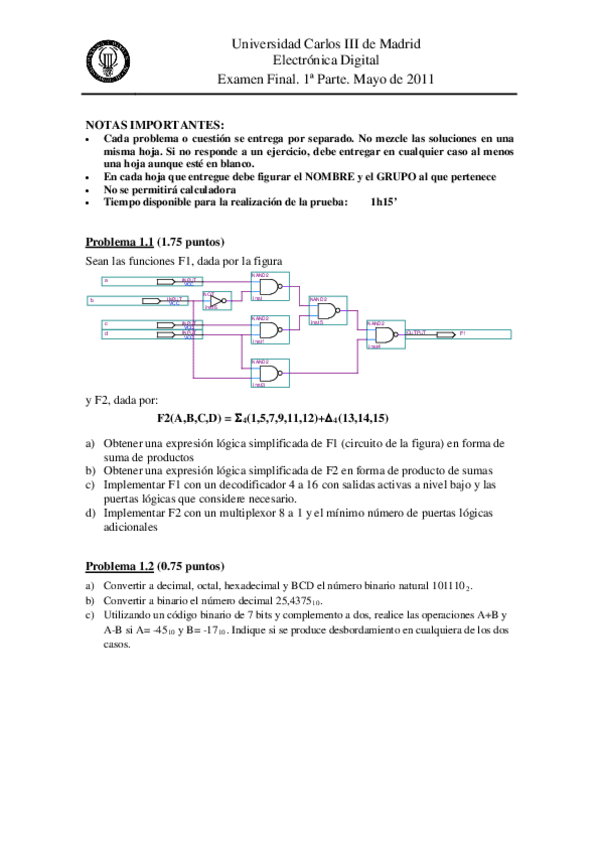 He publicado nuevos ejercicios de 4º Electrónica Digital: Problemas Examen Digital.pdf