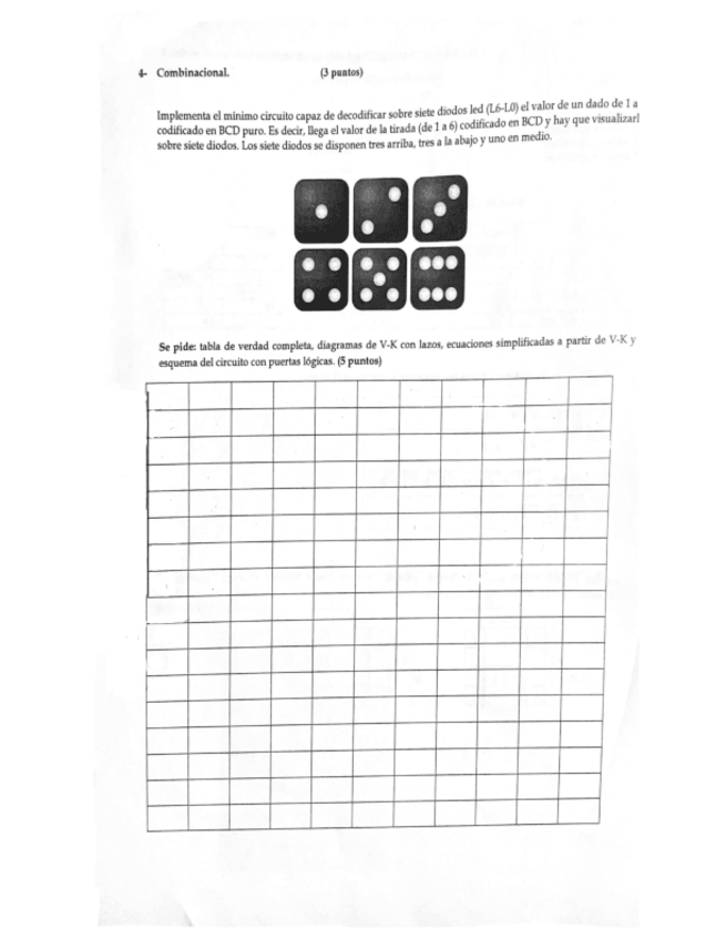 Prueba parcial (examen) electrónica digital: Binario, mapas de karnaugh, BCD, decodificador, circuitos.