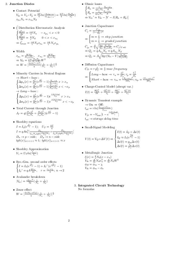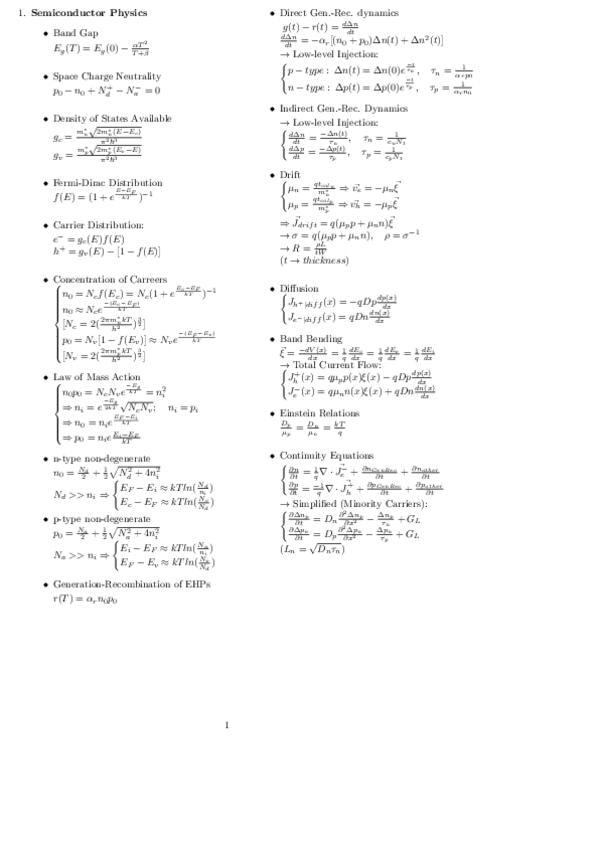 Formulario del examen a LaTex. Hay dos pequeñas erratas. La segunda formula de x_p es realmente x_n. El otro es que en el Tema 6 debe ser V_b=V_FB NO qV_b=V_FB, el potencial se da siempre en voltios.