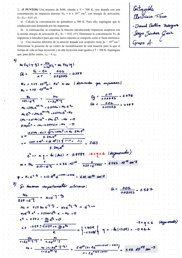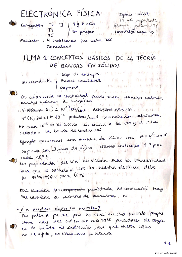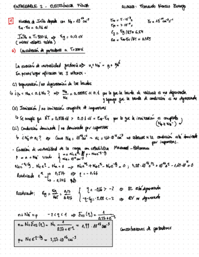 Apuntes de Electrónica Física con ejercicios de los entregables resueltos.