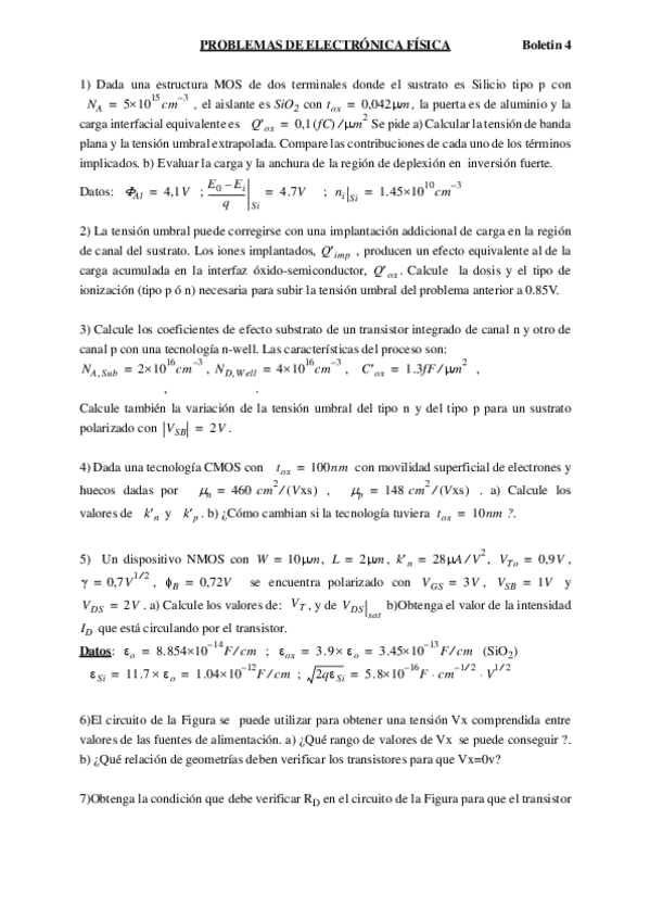 He publicado nuevos ejercicios de 4º Electrónica Física: ELECTRONICA MOS