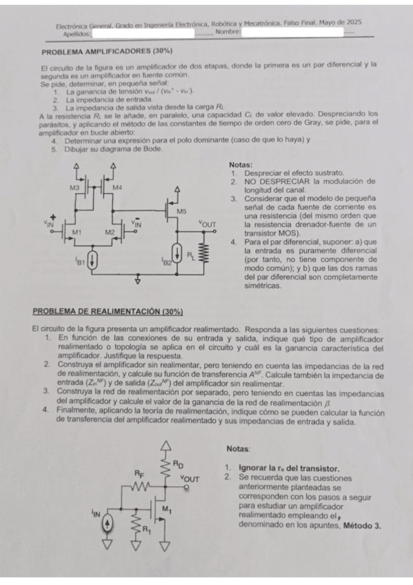 He publicado nuevos examenes de 2º Electrónica General: Falso-final-2425-Electronica-general.pdf