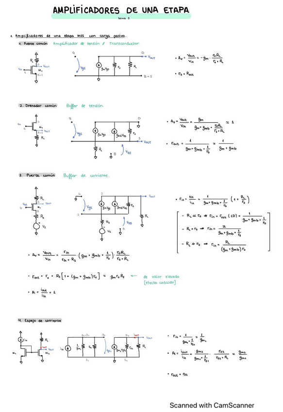 Resumen/Apuntes limpios de los temas 3, 4 y 5. Amplificadores. Curso 2024/2025 Profesor: Antonio Torralba