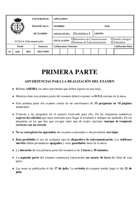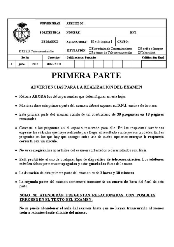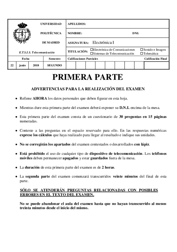 He publicado nuevos apuntes de 1º Electrónica I: Electrónica I EXÁMENES PARCIALES