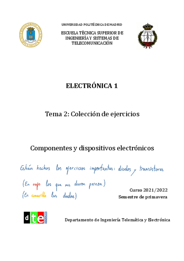 He publicado nuevos apuntes de 1º Electrónica I: Electrónica I EXÁMENES RESUELTOS