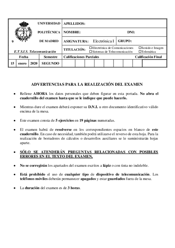 Electrónica I EXÁMENES RECUPERACIÓN
