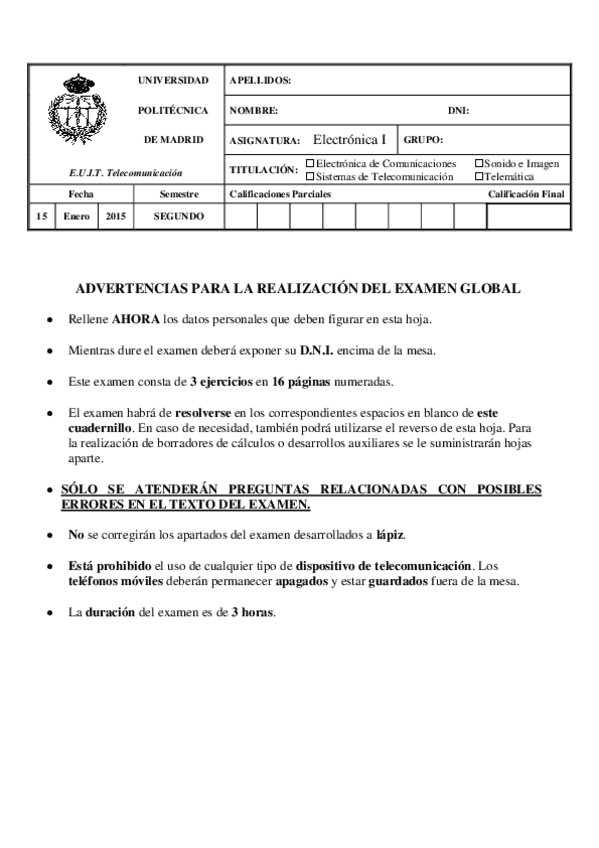 He publicado nuevos apuntes de 1º Electrónica I: Examenes años anteriores (no resueltos)