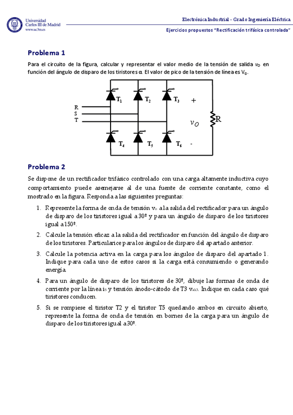 He publicado nuevos apuntes de 3º Electrónica Industrial: Problemas Rectificadores No Controlados