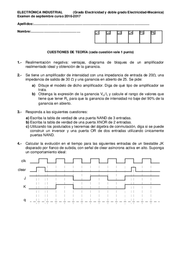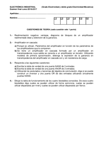 He publicado nuevos examenes de 2º Electrónica Industrial: EXAMEN-ELECTRONICA-PRIMER-PARCIAL-TEORIA.pdf