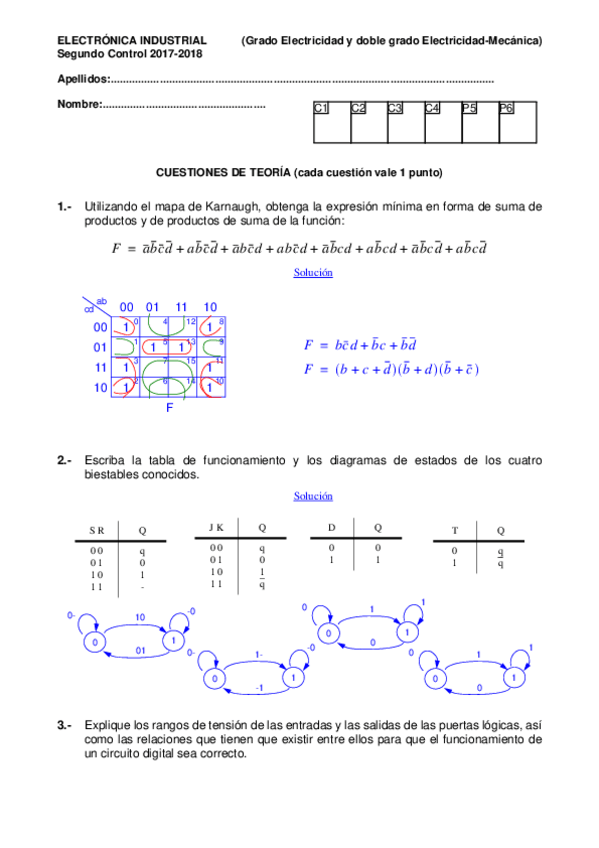 He publicado nuevos examenes de 2º Electrónica Industrial: Ejercicios-Karnaugh-examenes.pdf
