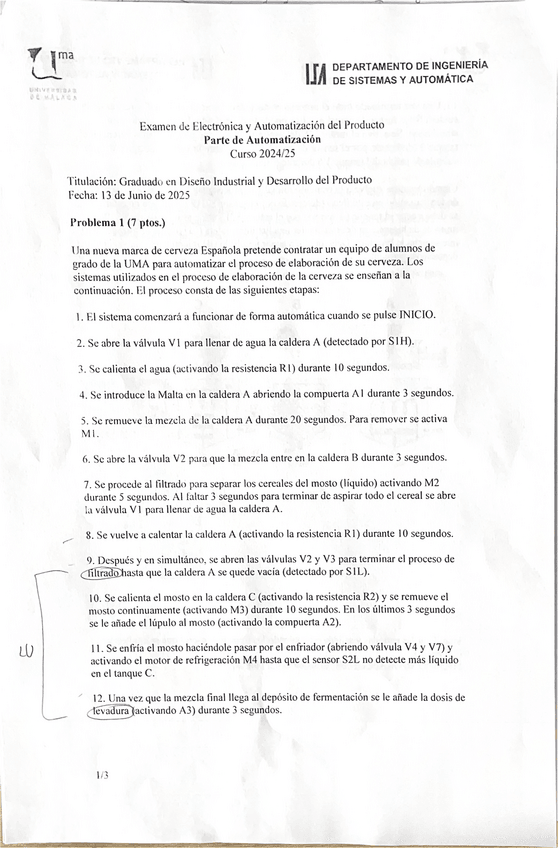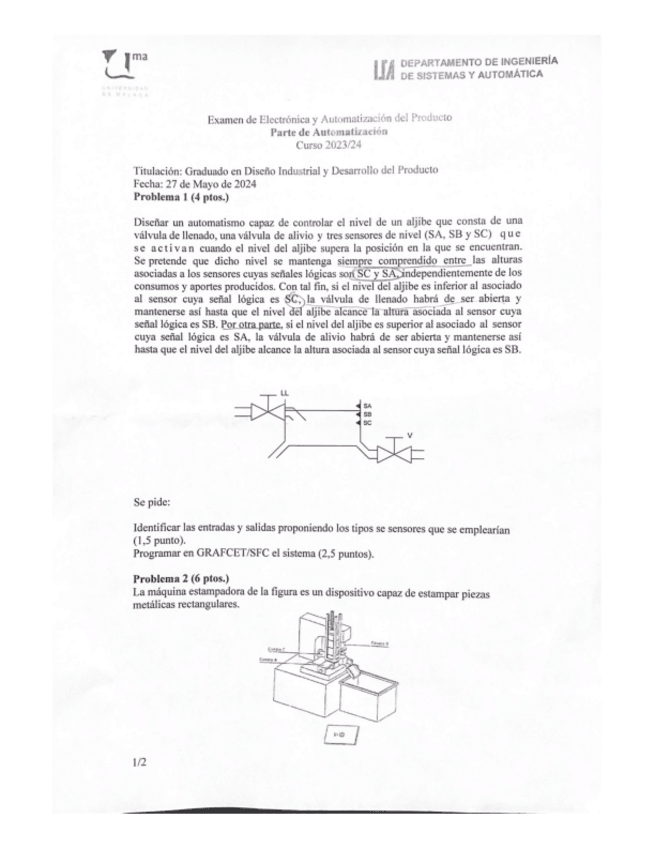 He publicado nuevos examenes de 3º Electrónica y Automatización del Producto: Examen-Final-Automatica-202425.pdf