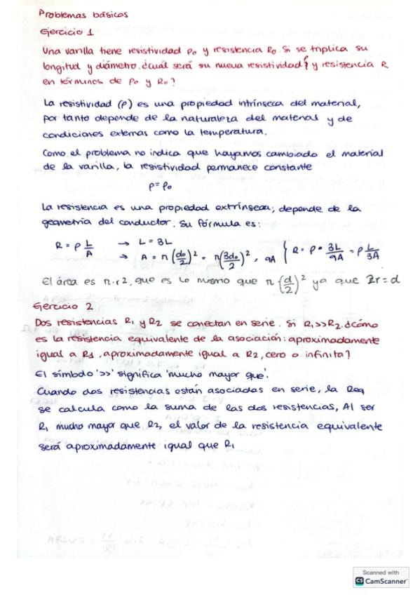 Ejercicios del boletín de problemas básicos del tema 2 'Corriente Eléctrica' resueltos con explicaciones.